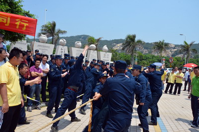 陽(yáng)光明媚、海浪輕拍,大雨洗滌過(guò)的海濱分外清新。員工和官兵代表們絡(luò)繹不絕、配合默契撿拾木棧道沿途垃圾,志愿者紅色馬甲與海軍藍(lán)色制服錯(cuò)落分布,構(gòu)成海灘一道獨(dú)特亮麗的風(fēng)景線。員工子女們也顧不得滿頭大汗,興沖沖地?fù)炱鸨缓K疀_上岸的雜物,用心體會(huì)著環(huán)保的理念和勞動(dòng)的快樂(lè)。音樂(lè)廣場(chǎng)上的拔河比賽和趣味游戲?qū)F(xiàn)場(chǎng)氣氛推向高潮。來(lái)自集團(tuán)和海軍南方局的16支代表隊(duì)奮力拼搏,拉拉隊(duì)員激情吶喊,充分展現(xiàn)了廣大員工和現(xiàn)代軍人團(tuán)結(jié)拼搏的精神風(fēng)貌。經(jīng)過(guò)激烈角逐,象嶼碼頭、海軍南方局代表隊(duì)拔得頭籌,分獲甲、乙組冠軍。由貿(mào)易、建設(shè)、速傳、資產(chǎn)四家工會(huì)精心準(zhǔn)備的趣味游戲吸引了眾多員工及家屬參與,“龍鳳戲珠”、“呼啦行進(jìn)”、“勇闖長(zhǎng)繩”、“向快樂(lè)出發(fā)”等環(huán)節(jié)異彩紛呈,歡呼聲、叫好聲,高潮迭起。