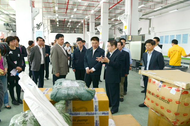 調(diào)研現(xiàn)場,王蒙徽書記等市領(lǐng)導(dǎo)聽取了王龍雛董事長、陳方副總裁對廈門跨境電商產(chǎn)業(yè)園情況的介紹,察看了作業(yè)現(xiàn)場。王書記在調(diào)研過程中對象嶼集團(tuán)在自貿(mào)試驗(yàn)區(qū)推動(dòng)過程中邊摸索、邊推動(dòng),敢于先行先試,開拓海運(yùn)快件物流新通路,構(gòu)建廈門跨境電商產(chǎn)業(yè)園的新思維、新模式給予了肯定,對海關(guān)、國檢給予的鼎力合作支持表示感謝。