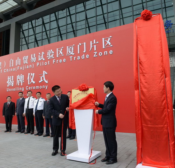 中國(guó)(福建)自由貿(mào)易試驗(yàn)區(qū)廈門(mén)片區(qū)在兩岸貿(mào)易中心舉行揭牌儀式
