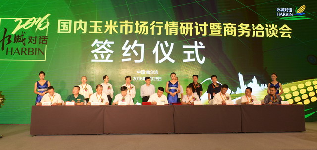 溝通、融合、創(chuàng)新、發(fā)展,在25日舉行的冰城對話——2016國內(nèi)玉米市場行情研討會(huì)暨商務(wù)洽談會(huì)共話玉米行業(yè)新政策、新市場、新思路、新格局。會(huì)議主辦方與承辦方共同牽線,實(shí)現(xiàn)龍江玉米與企業(yè)的產(chǎn)銷對接,為發(fā)育全國糧食大市場、促進(jìn)種糧農(nóng)民持續(xù)增收,推動(dòng)糧食產(chǎn)業(yè)全面振興起到積極作用。象嶼集團(tuán)作為此次會(huì)議的承辦方,積極貫徹落實(shí)國家玉米收儲(chǔ)制度改革重大部署,發(fā)揮大型國有糧食企業(yè)主力軍作用,助推龍江玉米市場化購銷,廈門象嶼集團(tuán)有限公司帶頭入市,董事長張水利代表象嶼與省糧食局簽訂玉米意向性購銷協(xié)議500萬噸。