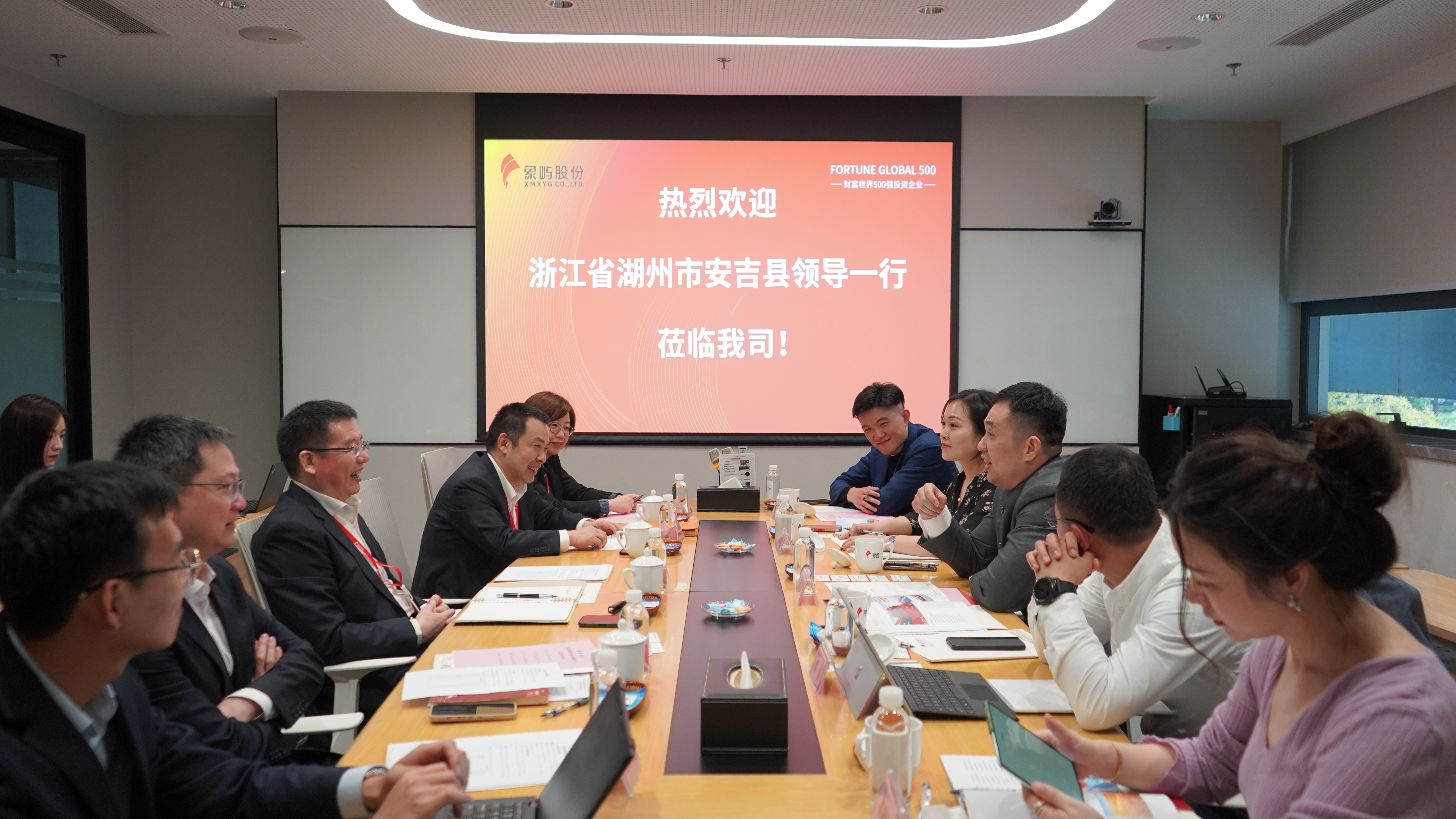 安吉縣財(cái)政局黨委委員、副局長劉清介紹了安吉的地理環(huán)境、社會資源、交通情況及重點(diǎn)產(chǎn)業(yè)等,并對象嶼股份的經(jīng)營成果給予了高度評價(jià)。他表示,安吉正在進(jìn)行全面信息化、智能化創(chuàng)新實(shí)踐,這與象嶼股份“六五”戰(zhàn)略規(guī)劃的發(fā)展重點(diǎn)不謀而合,希望雙方能夠整合優(yōu)勢資源,開展更多交流。后續(xù),象嶼股份也將派考察團(tuán)赴安吉進(jìn)行實(shí)地調(diào)研,尋找攜手推動(dòng)高質(zhì)量發(fā)展的新方向。